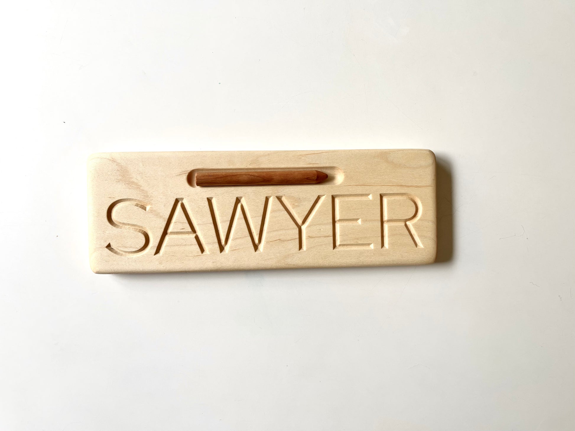 Custom maple wood name tracing board - with cherry wood stylus polished with organic bees wax and mineral oil