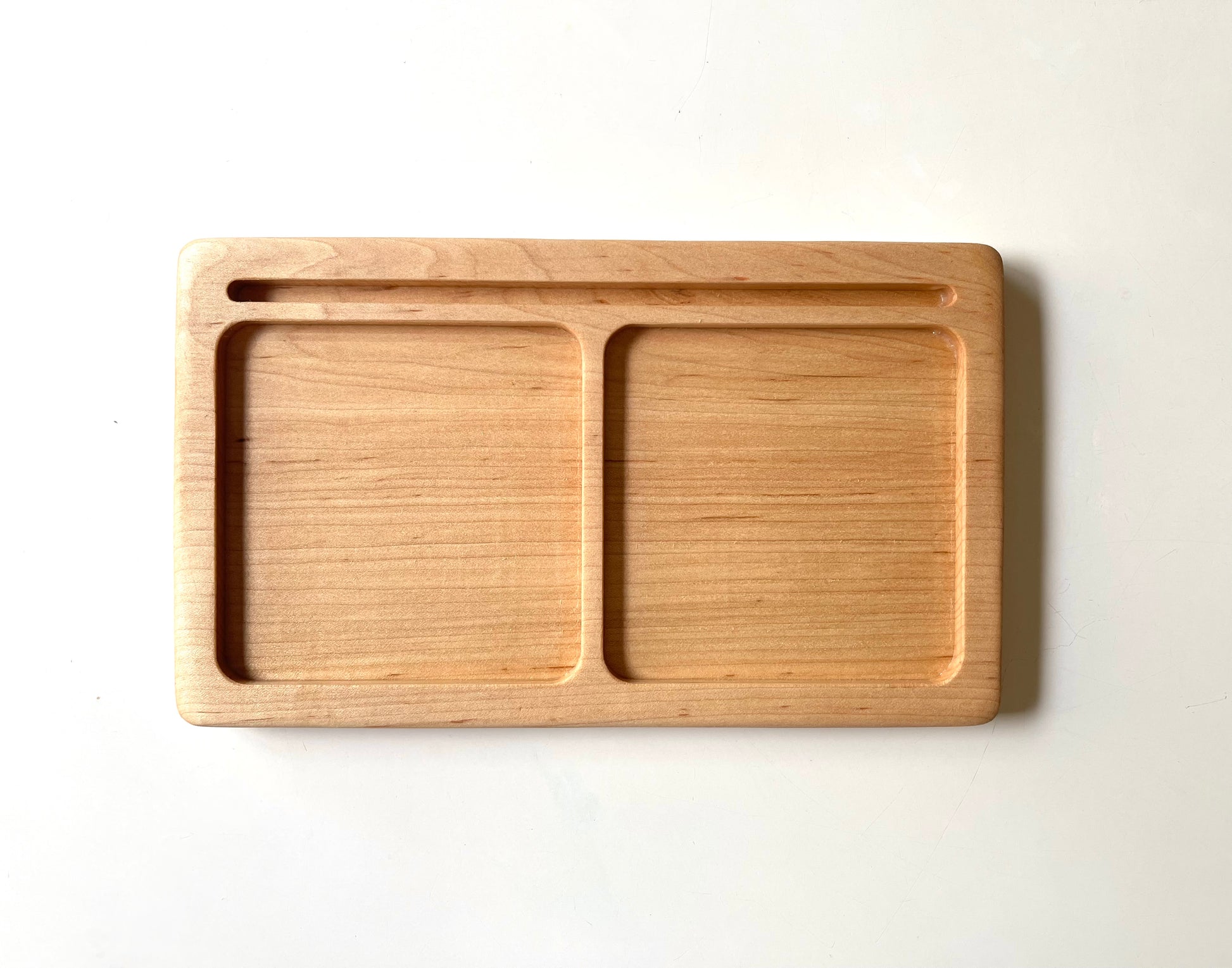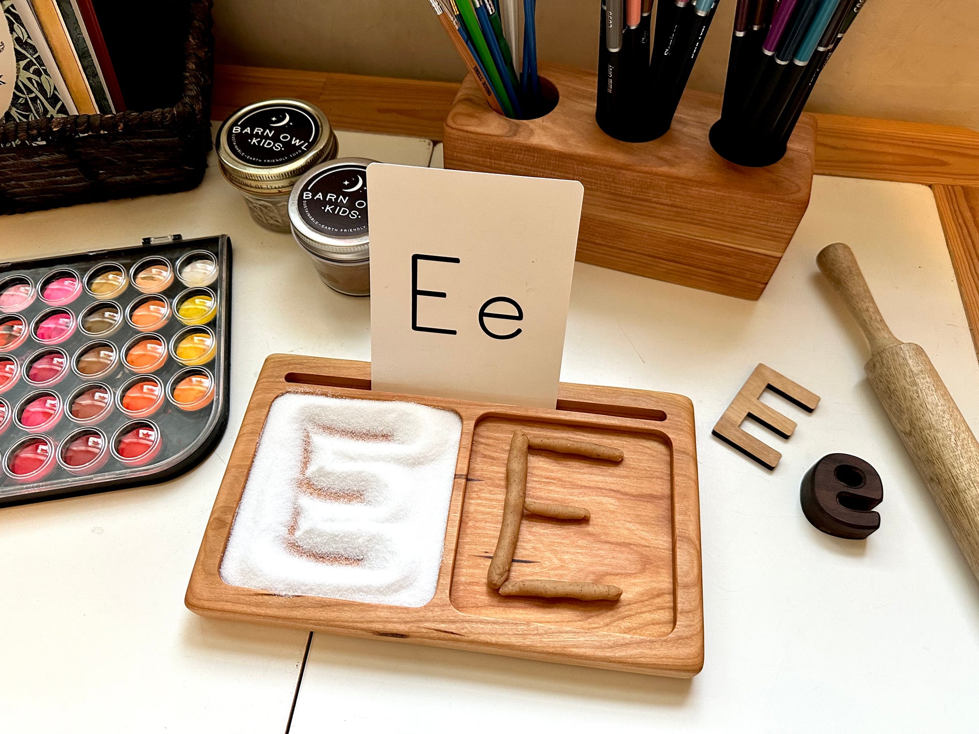 Two part educational activity tray with card slot, made out of premium maple or cherry wood and polished with organic bees wax and mineral oil.